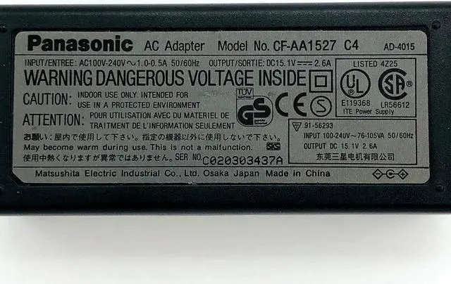 Genuine Panasonic CF-AA1526 M3 AC/DC Power Supply Adapter 15.1V 2.6A w/PC