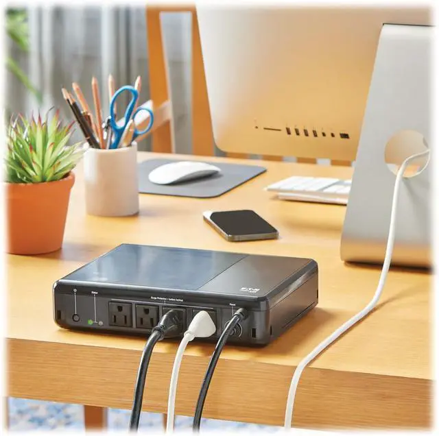 With 190 joules of surge suppression and four NEMA 5-15R outlets, the BC600R shields connected devices from damaging surges. It also filters EMI and RFI interference that can corrupt data and cause instability.