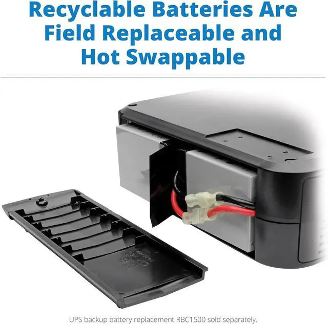 SMART1500LCD line-interactive UPS provides battery backup and AC power protection against blackouts, brownouts, overvoltages, surges and line noise. Eight standard outlets provide PWM sine wave AC output. The large LCD indicates operation details including voltage, runtime, load, battery and operating mode. Internal battery can easily be replaced with Tripp Lite's RBC1500 model replacement battery.