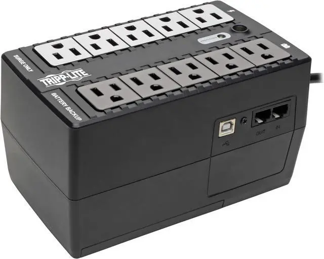 Ultra-compact standby UPS with built-in USB monitoring protects PCs, network workstations and other systems reliant upon a USB interface for UPS monitoring and unattended system shutdown. Maintains AC output during blackouts and brownouts starting at 99V. Includes USB monitoring with cabling, TEL/DSL line surge suppression, surge-only outlets and LED indicators. PowerAlert software available free via download.