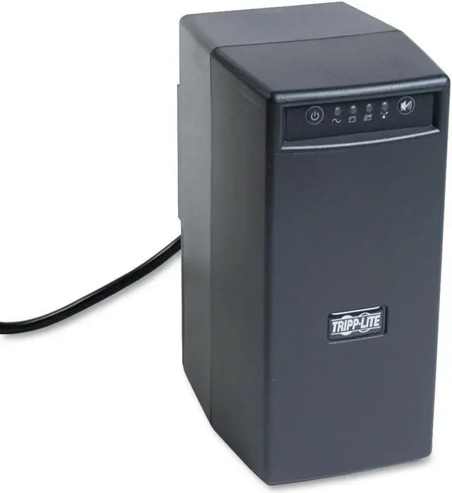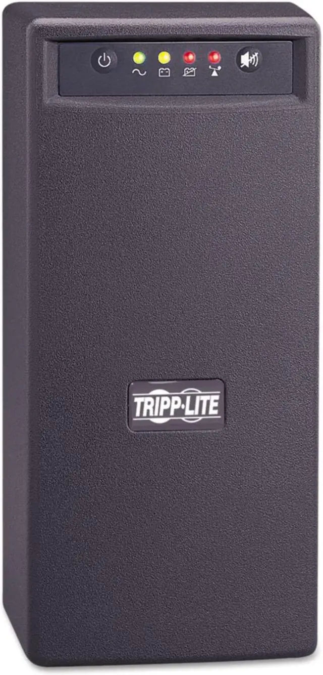 Tripp Lite's OMNIVS1000 line interactive UPS system offers voltage regulation, surge suppression and long lasting battery support for personal computers, internetworking equipment and other sensitive electronics. Internal UPS circuits support entry level PC systems for up to 60 minutes during power failures so that connected equipment can be shut down without data loss. Automatic Voltage Regulation (AVR) circuits regulate brownouts as low as 89 volts back to usable levels without using battery power. Offers complete desktop power protection in an attractive black tower configuration. Includes 6 battery supported outlets for computer, monitor and one vital system peripheral, plus 2 additional surge suppression-only outlets for printers and other system accessories not requiring battery support. USB port enables optional unattended system shutdown without data loss in the case of extended power failure, USB cable included. PowerAlert software available via download from Tripp Lite's website at no cost. Built-in RJ45 TEL/Ethernet suppression jacks protect modem, fax machine, cordless phone or other peripheral with a standard single-line tel/DSL or data line connection. Built-in audible alarm and 4 front panel LEDs indicate line power status, battery power status, battery low/replace status and overload. 1000VA/500 watt power handling ability supports entry-level PCs, network workstations, point-of-sale equipment, small business phone systems, audio/video equipment and home theater systems. Offers 3.5 minutes battery runtime with a full load of 1000VA/500 watts and 14 minutes with a half load of 500VA/250 watts. Supports battery replacement via built-in access panel.