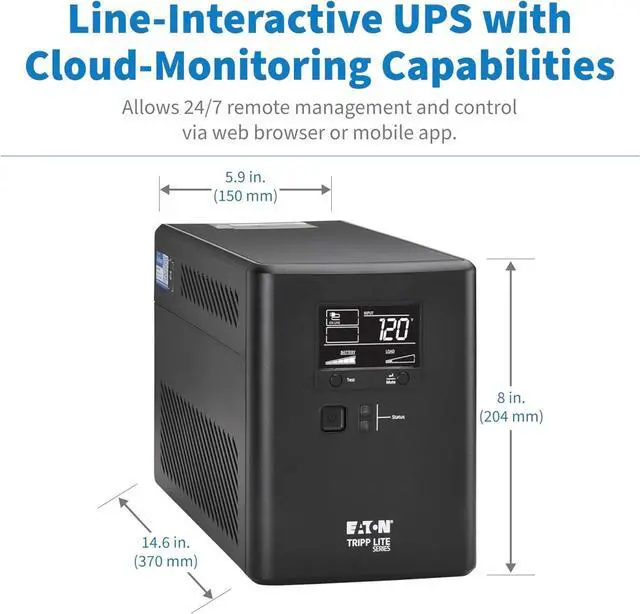 CLOUD-ENABLED NETWORK UPS: Manage your tech from anywhere. Configurable UPS alerts notify you through email or text. Silence alarms, shutdown or restart equipment, and control outlet banks through web browser or Eaton's free Brightlayer app.