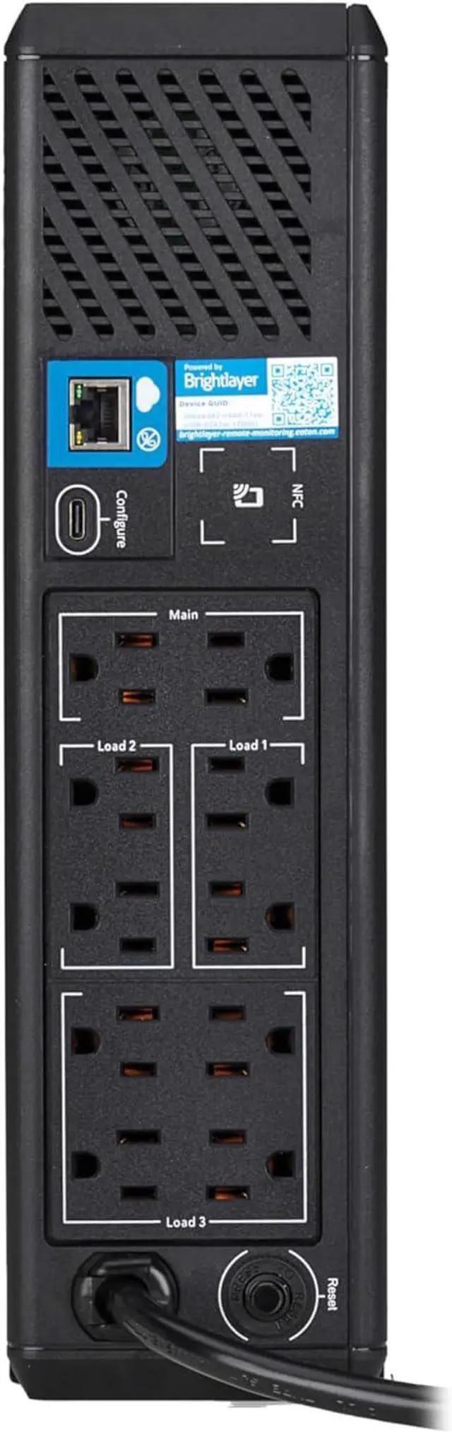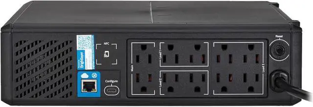Ten outlets provide battery backup and surge protection. Three switchable load banks can be remotely powered on/off or cycled, reducing service calls.