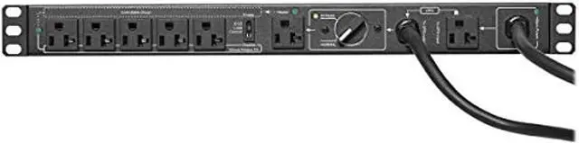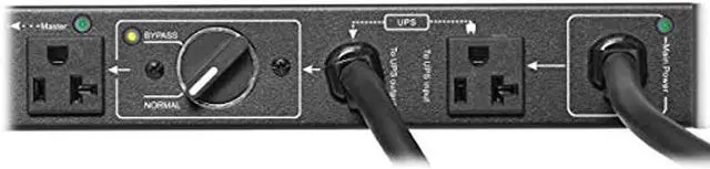 FEATURES DUAL INPUTS AND A MANUAL TRANSFER SWITCH: The PDUB201U includes separate UPS and utility input cables with NEMA 5-20P plugs. The manual transfer switch allows PDU output power to flow from either input. Flip the switch to Bypass to replace the UPS and flip back to Normal once the maintenance or UPS replacement is complete. Equipment connected to the six NEMA 5-20R outlets will continue to operate without interruption.