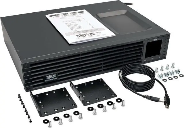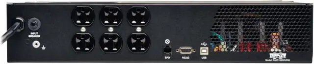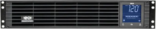 The SMC10002URM SmartPro 120V 1kVA 700W Line-Interactive Sine Wave UPS provides battery backup and AC power protection against blackouts, brownouts, power surges and line noise that can damage electronics or destroy data. Ideal for backing up high-performance workstations, servers and network equipment, the SMC10002URM switches to battery mode in milliseconds to keep your connected equipment running long enough to save files and shut down safely with no data loss. Pure sine wave output is compatible with active power factor correction (PFC) power supplies. Featuring six NEMA 5-15R outlets and a 10-foot power cord with 120V NEMA 5-15P input, the SMC10002URM has an internal battery that provides 15.6 minutes of support at half load and 6.4 minutes at full load. A front-panel LCD screen lets you configure settings and monitor operating data, such as load level, voltage, battery charge and estimated runtimes. Automatic voltage regulation (AVR) maintains 120V nominal output over an input range of 83V to 147V without using battery power. EMI/RFI noise filtering improves your equipments performance and prevents damage. A 570-joule surge suppression rating protects your equipment from harmful power surges. With Tripp Lites free downloadable PowerAlert software, the SMC10002URM enables safe unattended system shutdown and file saves in case of a prolonged power failure.
