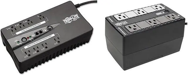 550VA/300W battery backup UPS with Eco energy-saving outlets, 8 total outlets, USB port, surge protection, 3-year warranty