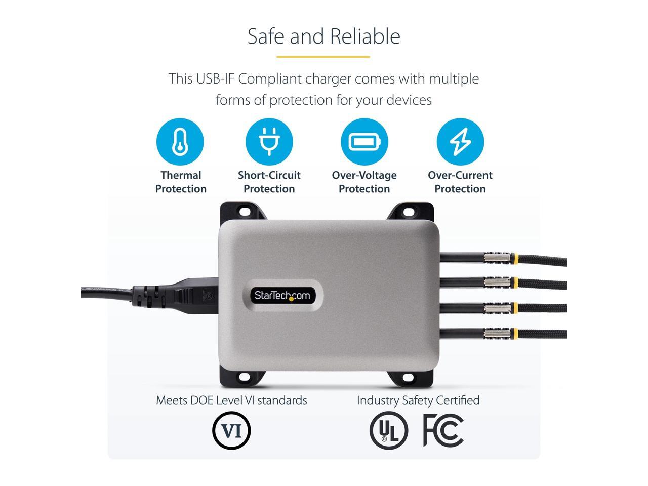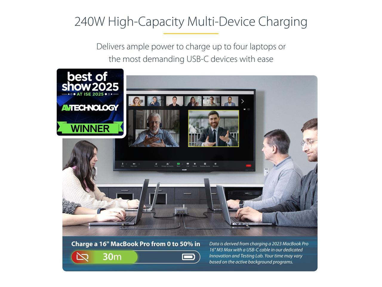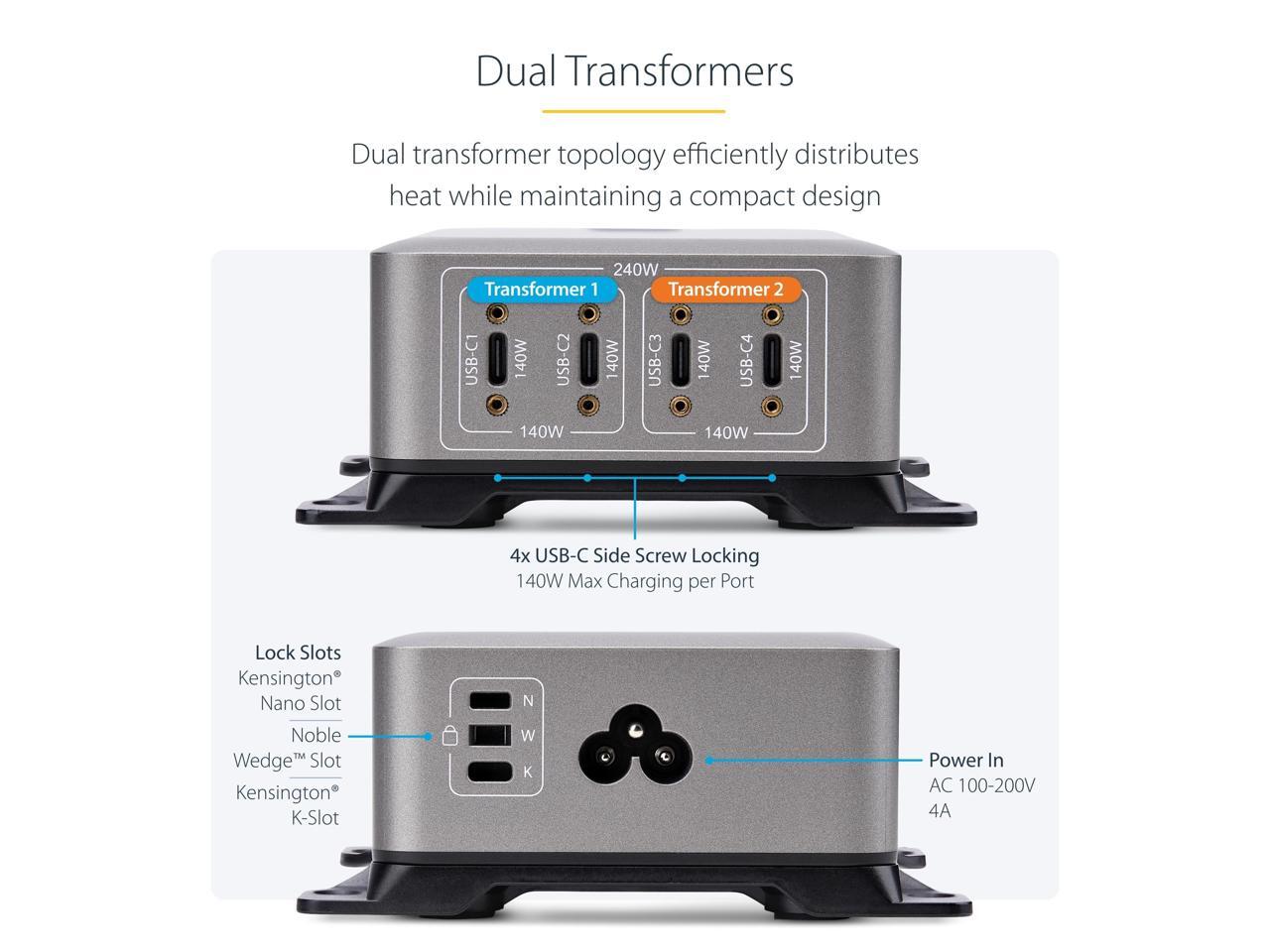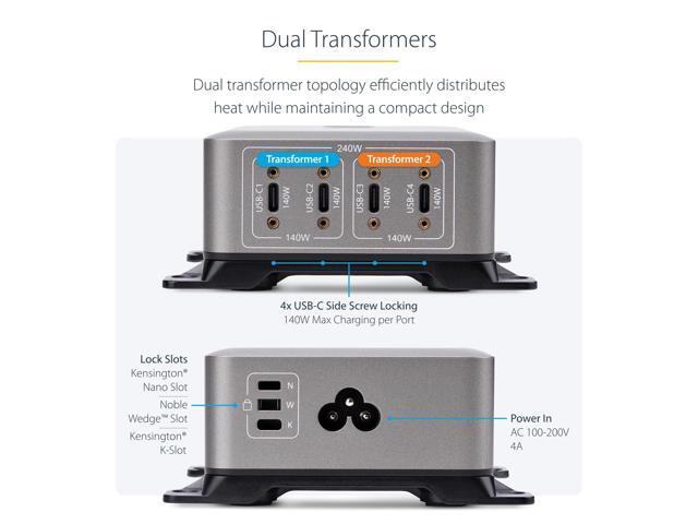 StarTech 4-Port Multi-Device USB-C Charger, 240W Total, Single Port 140W EPR, PD 3.1, Screw Locking Ports, Surface Mounting, Ideal for Boardrooms model 424DNA-USB-C-CHARGER