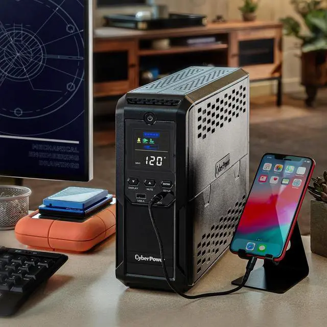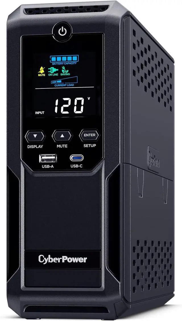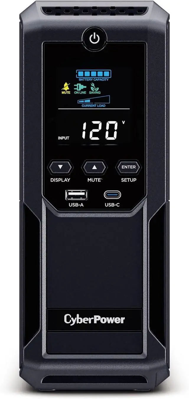 A mini-tower UPS with line interactive topology, the CyberPower Intelligent LCD provides battery backup (using simulated sine wave output) and surge protection for desktop computers, workstations, networking devices, and home entertainment systems. The BRG1500AVRLD2 uses Automatic Voltage Regulation (AVR) to correct minor power fluctuations without switching to battery power, which extends battery life. AVR is essential in areas where power fluctuations occur frequently. The BRG1500AVRLD2 comes with a five year warranty (including coverage of batteries) and a $500,000 Connected Equipment Guarantee.