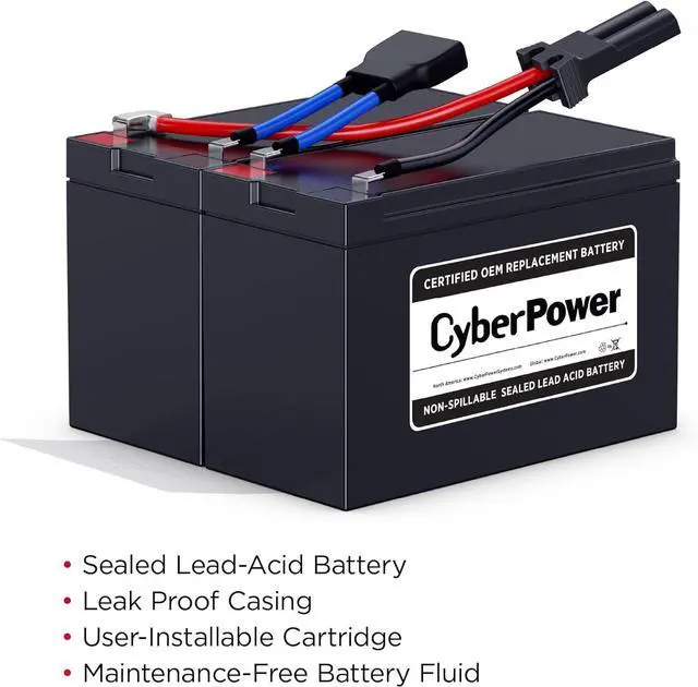 The RB1270X2B UPS Replacement Battery Cartridge restores life to CyberPower UPS systems that have weak or completely depleted internal batteries. The RB1270X2B contains two 12V/7AH replacement batteries, certified to meet or exceed original manufacturer specifications. These leak-proof, sealed lead-acid batteries never require replacement fluid. The pre-assembled cartridge installs easily into your CyberPower UPS system and is shipped with reusable packaging for delivering expired batteries to a suitable recycling center. The RB1270X2B comes with instructions, recycling information, and an eighteen-month warranty. UPS Compatibility: PR750LCD, PR750LCDTAA.