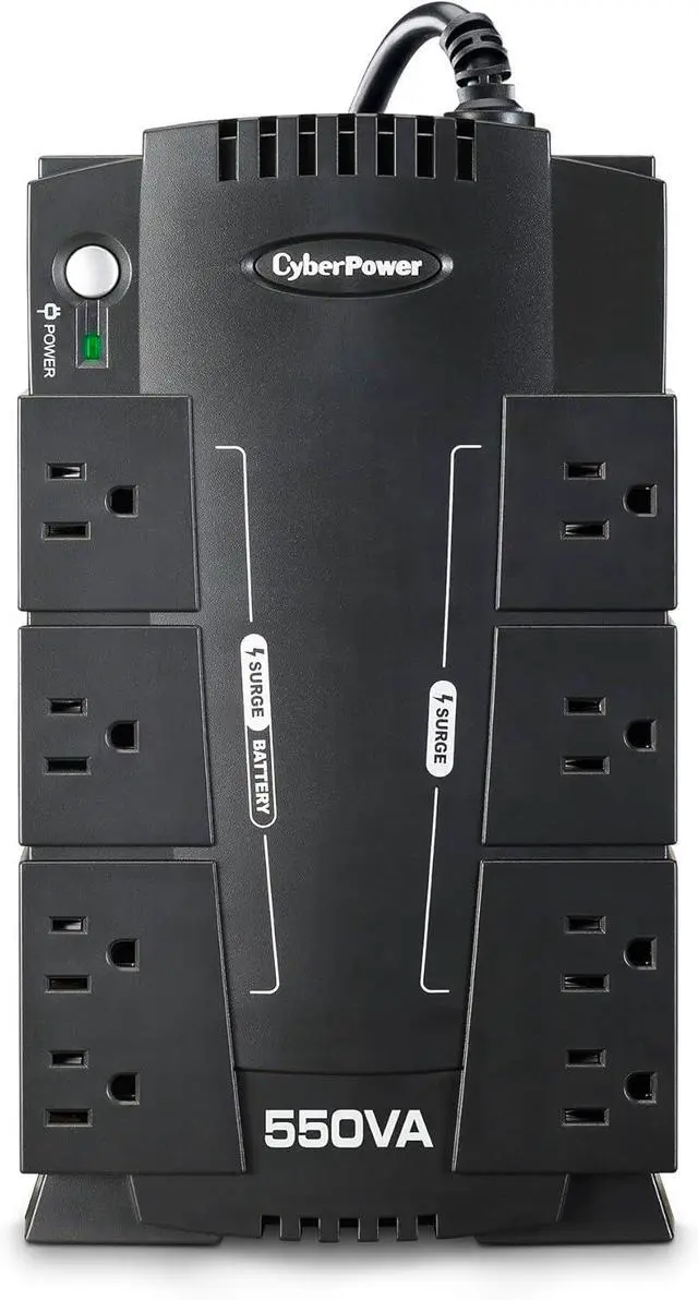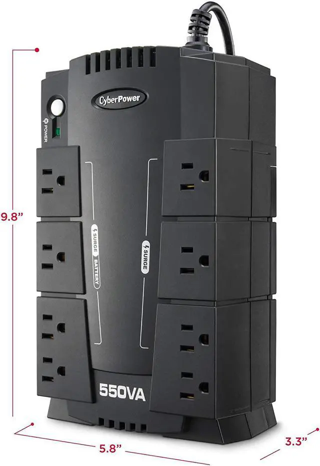 550VA/330W Standby Battery Backup Uninterruptible Power Supply (UPS) System uses simulated sine wave output to safeguard workstations, networking devices, and home entertainment equipment