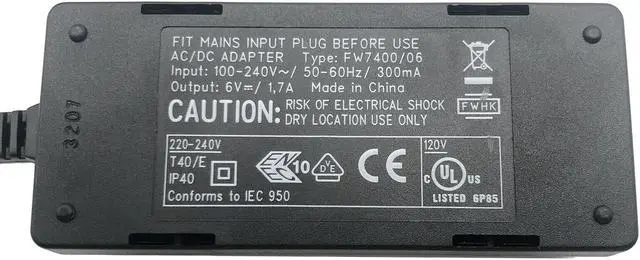 New Genuine Promethean AC Adapter Power Supply T40/E IP40 1.7x4mm w/P.Cord