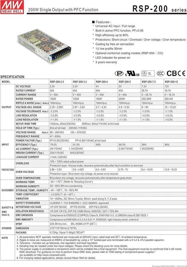 Universal AC input / Full range (RSP-2000) AC input 180~264VAC only (RSP-2400/3000)