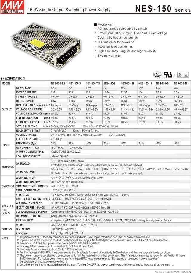 MEAN WELL MW NES-150-12 12V 12.5A 150W Single Output Switching Power Supply