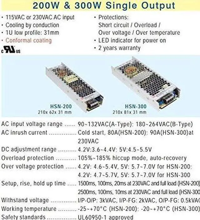 Protections: Short circuit / Overload / Over voltage /Over temperature