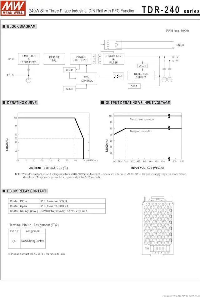 Working temperature:-30~+70(Refer to Derating Curve)