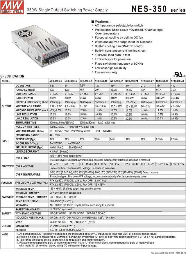 1.Mean Well NES-350-12 single output 12V power supply - enclosed type.