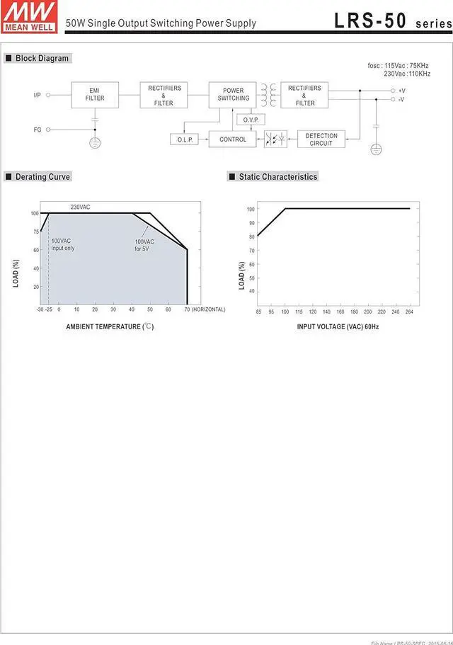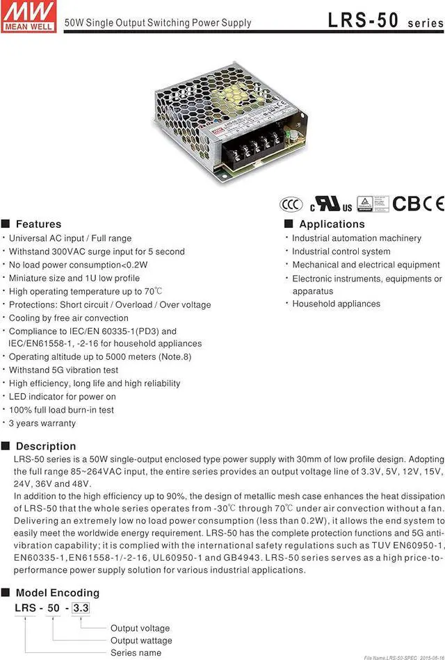 MEAN WELL MW LRS-50-15 15V 3.4A 50W Single Output Switching Power Supply
