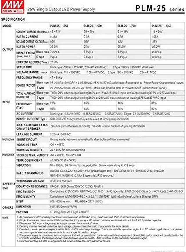 Output 25.2W 24V 1.05A. Actual inventory and quick shipment. Typical Standard shipping is about 7-12 days, more than 2kg possible ship by DHL / FEDEX about 3-5 days.