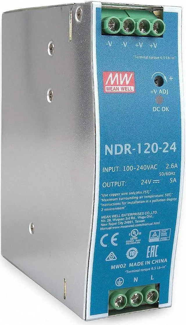 Can be mounted directly on the DIN rail Universal input Closed design, touch-protected screw connections Overload protection by current limitation, auto recovery Protected against short circuit, overload, overvoltage LED display for DC OK power supply type: DIN rail power supply stabilization: constant voltage topology: AC/DC converter input voltage: 115V / 230V (universal) output voltage: 24V output current. : 5A Power : 5A 20 W input voltage (min...max): 90...264VAC output voltage (minmax): 24...28VDC efficiency: 88% length: 125.5 mm width: 40 mm height: 113.5 mm connection input: screw terminals connection output: screw terminals