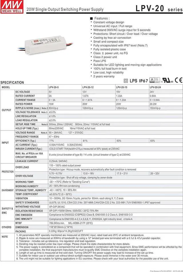 Withstand 300VAC surge input for 5 seconds (LPV-20/35)