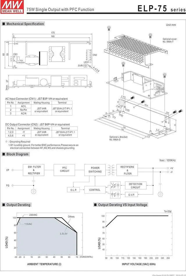 [PowerNex] Mean Well ELP-75-15 15V 5A 75W Single Output Switching with PFC Funtion Power Supply