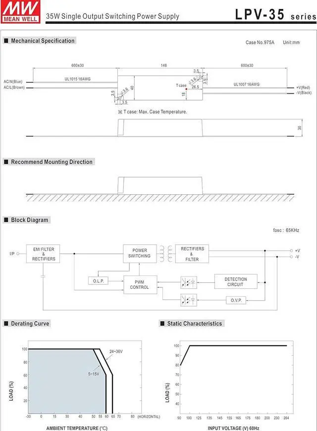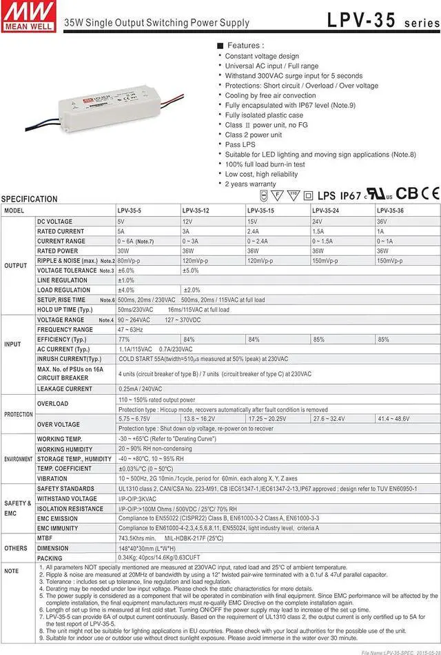 Withstand 300VAC surge input for 5 seconds (LPV-20/35)