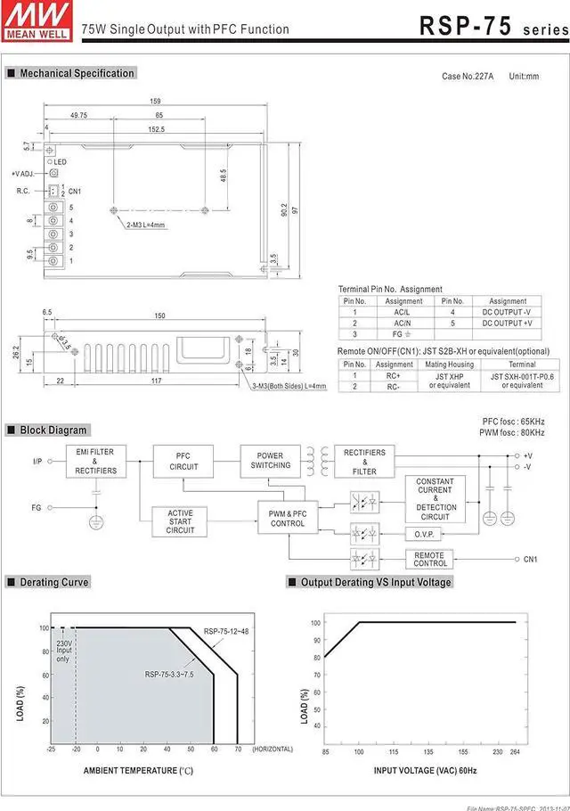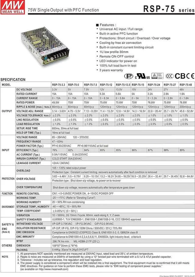 RSP-75-24 AC/DC Power Supply Single-OUT 24V 3.2A 76.8W 7-Pin