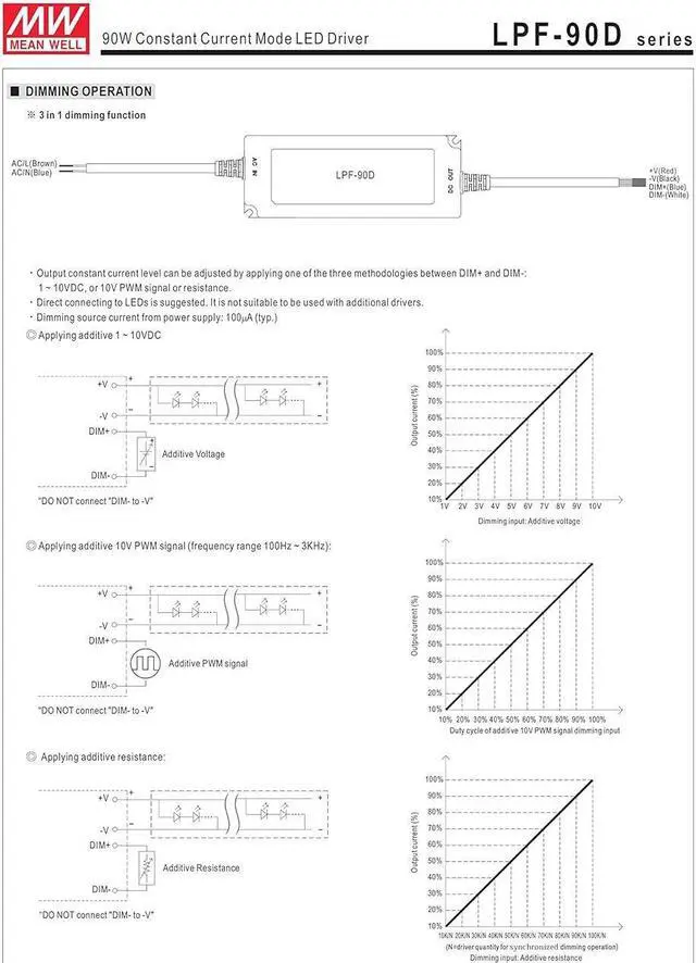 Universal AC input (up to 305VAC) / Full range Built-in active PFC function Suitable for dry, damp, and wet location Suitable for LED lighting and moving sign applications 5 years warranty