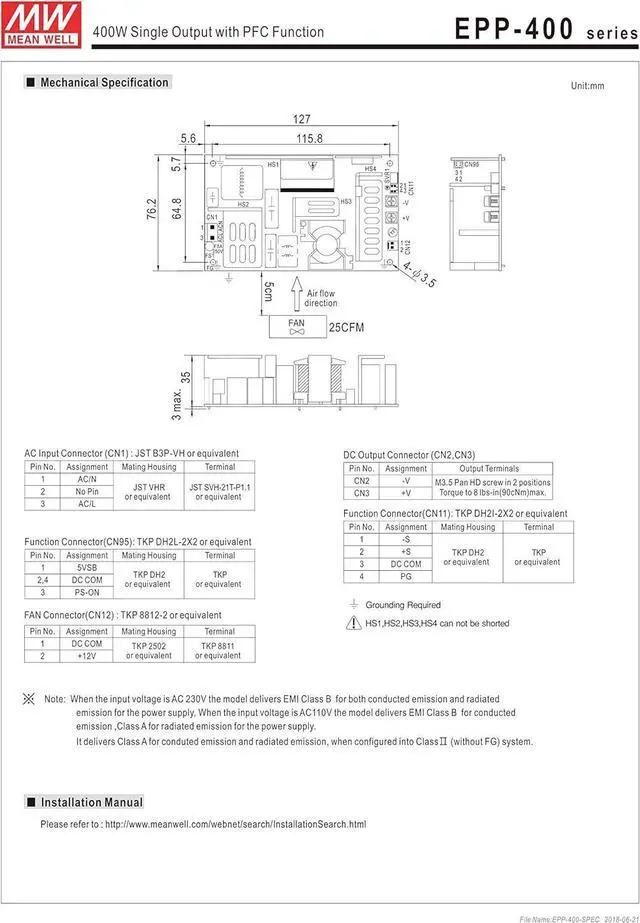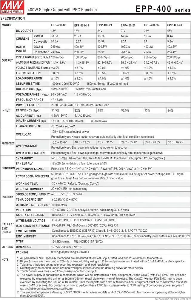 Standby 5v @ 1A with fan,@ 0.6A without fan(EPP-300/400)