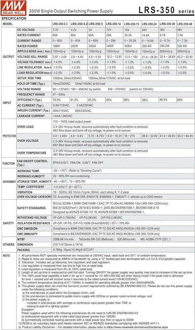 The LRS-350-5 combines efficiency, reliability, and affordability, making it the ideal choice for industrial, mechanical, and electronic applications.