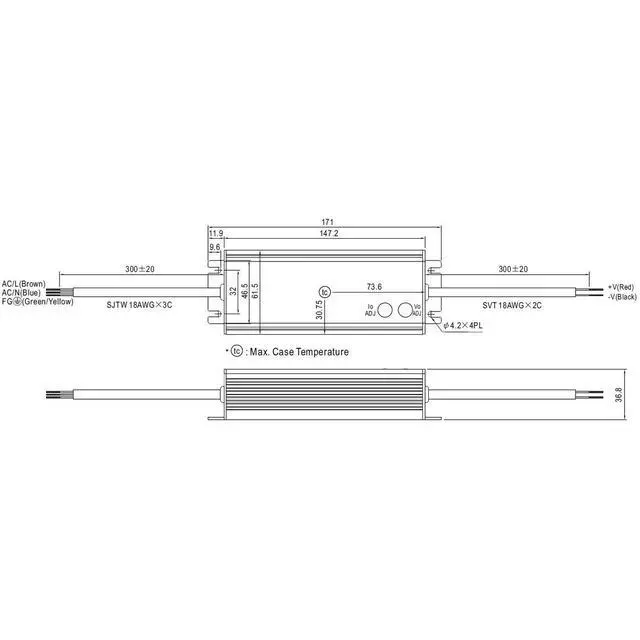 The product type is 24V 2500mA 60W Class 2 Enclosed Switching Power Supply Outputs Adjustable by Internal Pot, this product is made in China and manufactured by Mean Well.