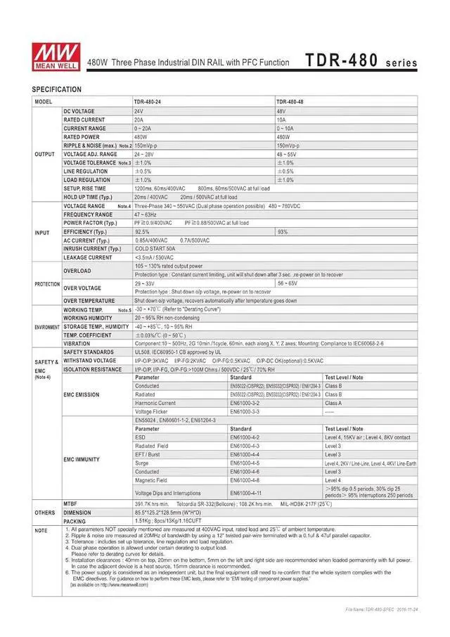 The product type is 24V 20A 480W Three Phase Industrial DIN Rail Power Supply, this product is made in China and manufactured by Mean Well.