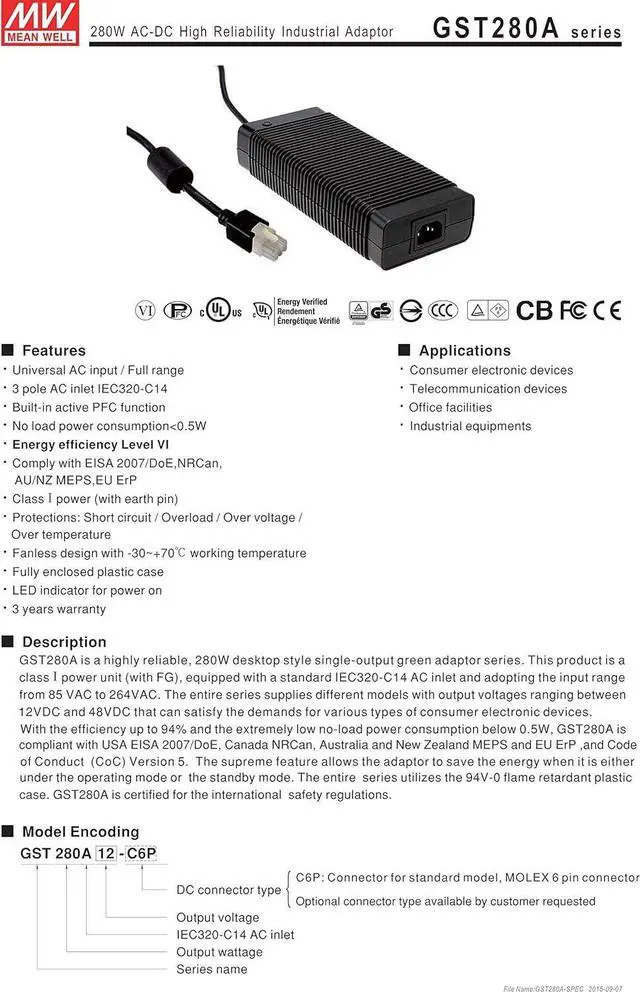 No load power consumption<0.15W(GST280A <0.5W)