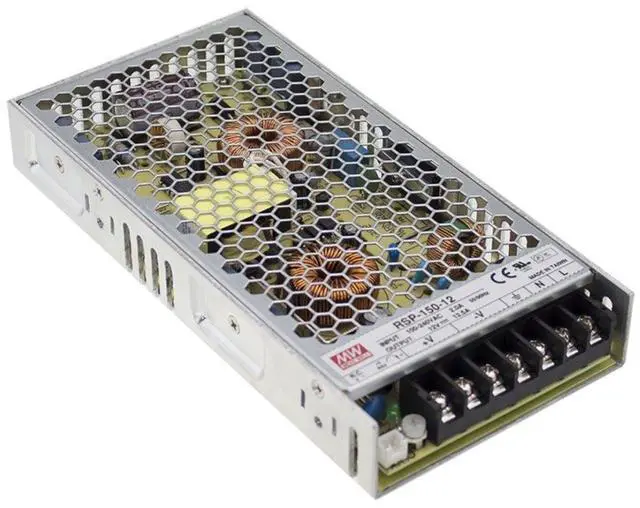 The product type is AC to DC Switching Enclosed Power Supply with PFC Function 12 Volts 12. 5 Amps 150 Watts, this product is made in China and manufactured by Mean Well.