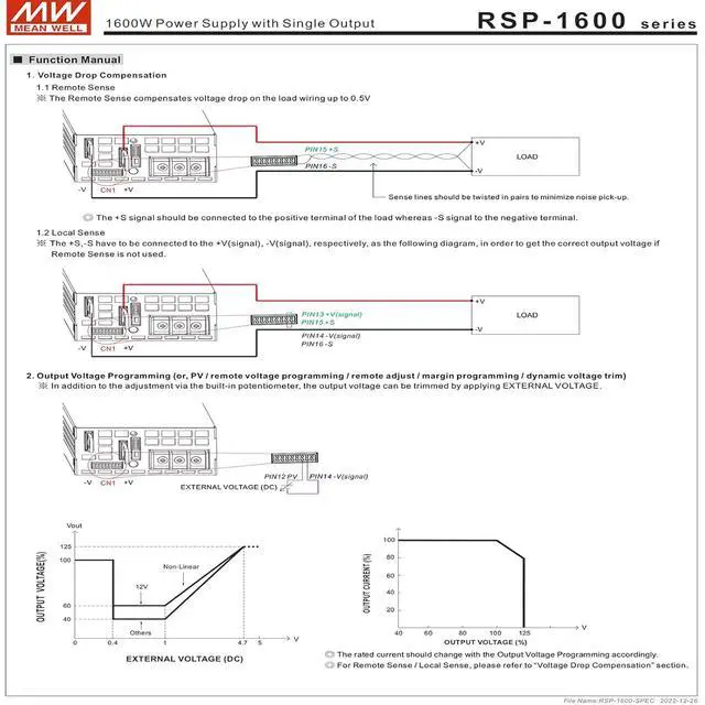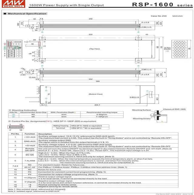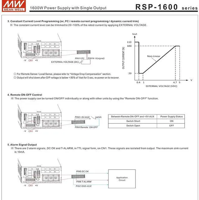 Moreover, RSP-1600 provides vast design flexibility by equipping various built-in functions such as the output programming, active current sharing, remote ON-OFF control, auxiliary power, etc.
