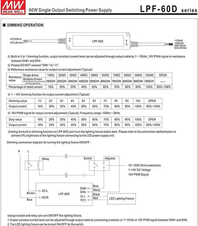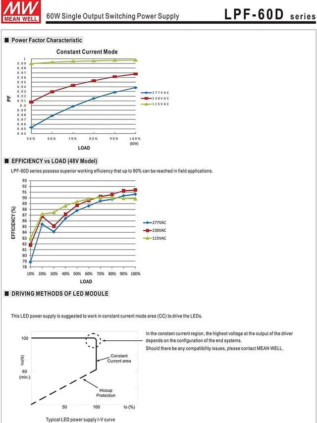 60 W Single Output 1.12 A 54 Vdc Output Max Dimmable Switching Power Supply For more info refer to the specification sheet located in the 'Downloads' section below the image