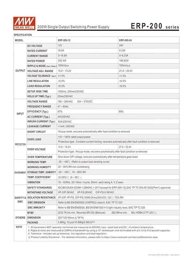 ERP-200 series is a 2o0w single output enclosed type AC/DC power supply . It adopts an aluminumcase and the interior is semi-potted, protecting the internal electronic components from rain splashand dust. With the complete protection functions, ERP-200 is suitable for the applications such asoutdoor LED channel letters, billboard, commercial display, etc.
