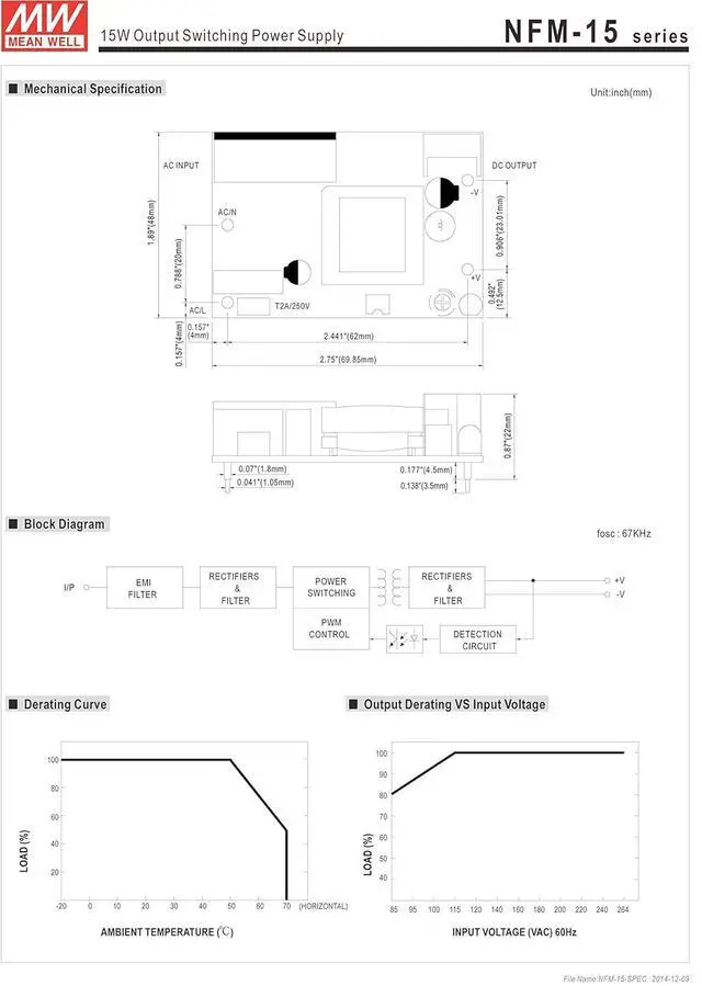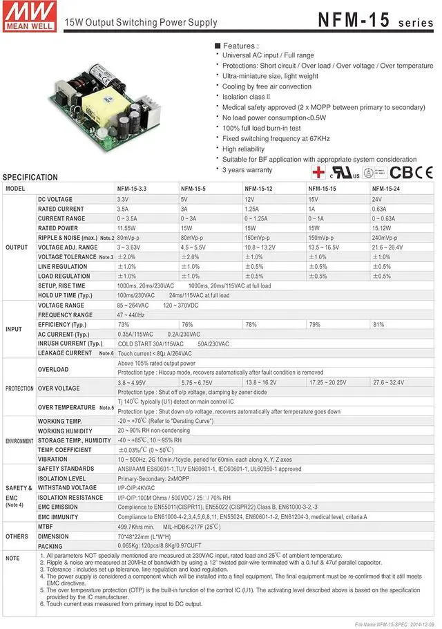 NFM-15 Series 15 W Single Output 12 V AC/DC Switching Power Supply ***** For more information refer to the specification sheet located in the 'Downloads' section below the image *****