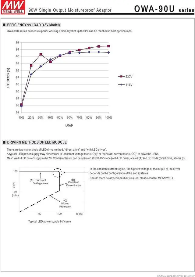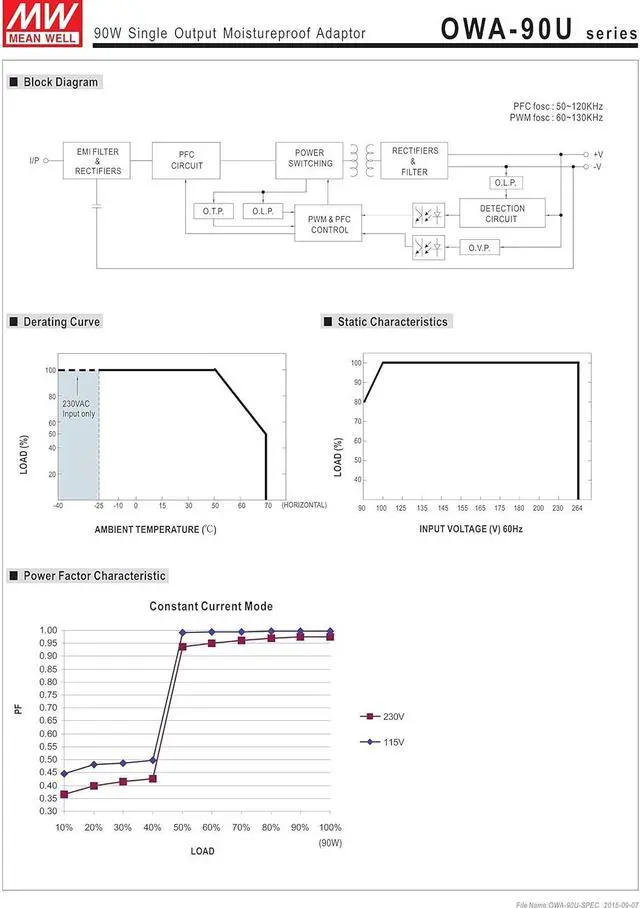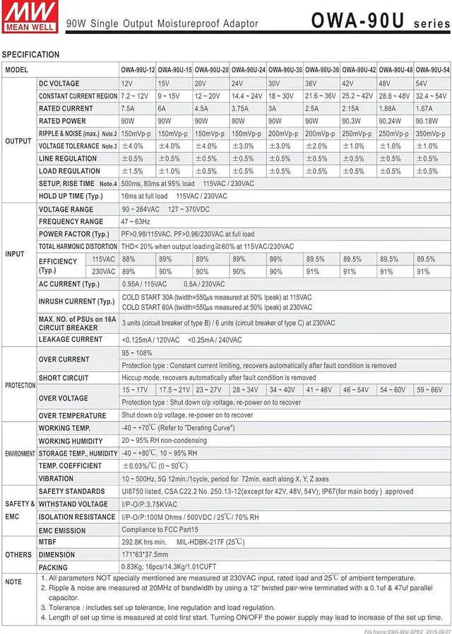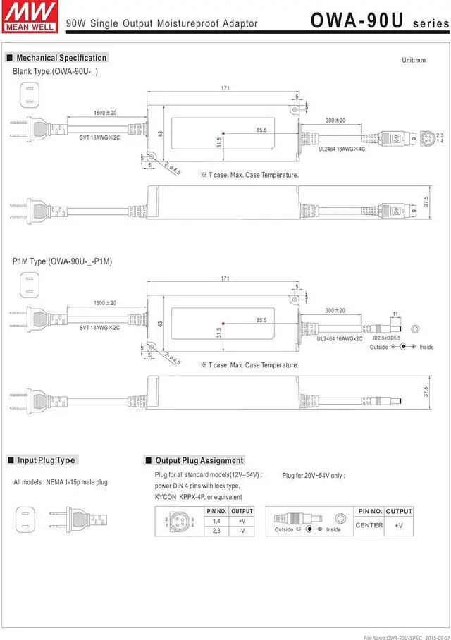 [PowerNex] Mean Well OWA-90U-24 24V 3.75A 90W Single Output LED Moistureproof AC Adaptor
