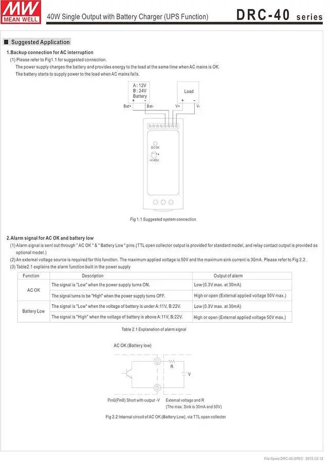 Alarm signal for AC OK and battery low