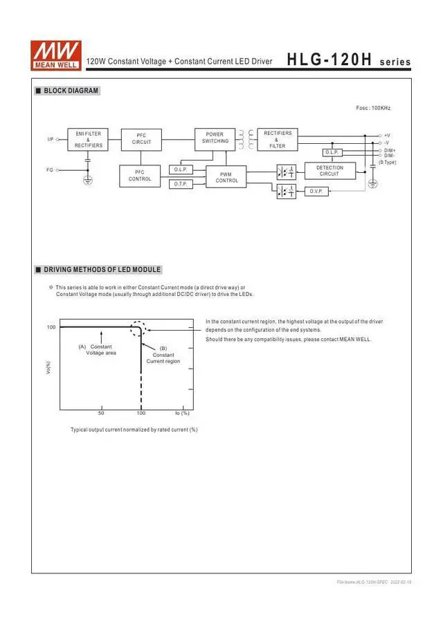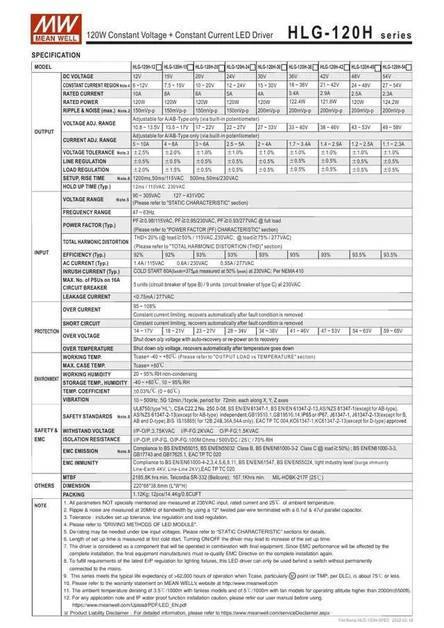 Mean Well HLG-120H-36A Constant Voltage + Constant Current LED Driver HLG-120H