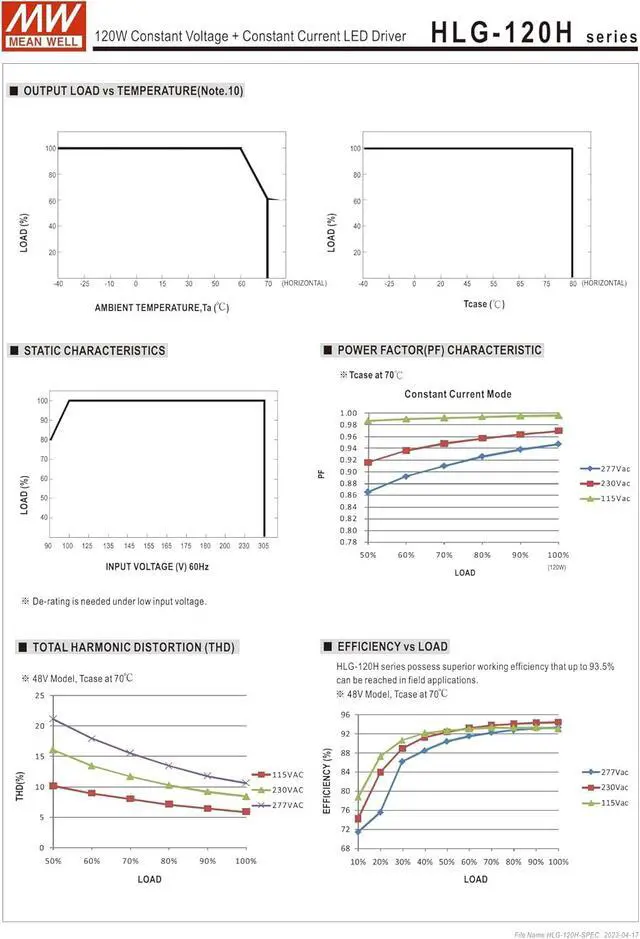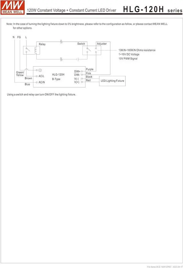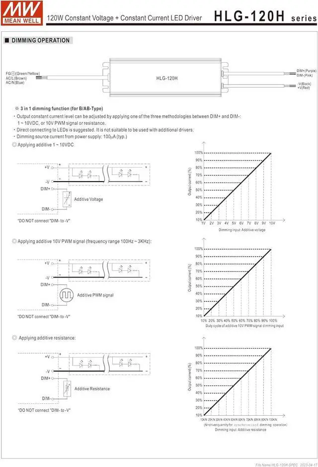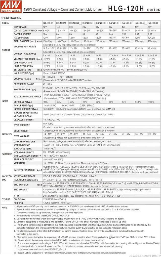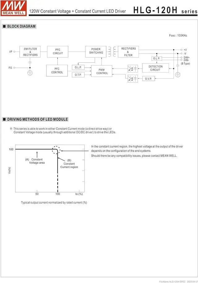 Mean Well HLG-120H-24A Constant Voltage + Constant Current LED Driver HLG-120H