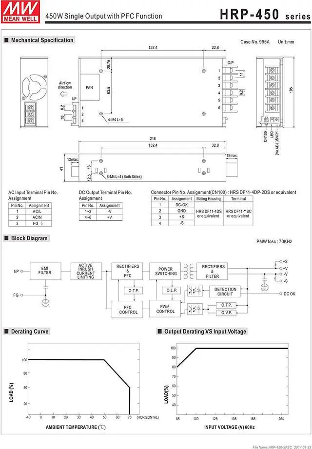 [PowerNex] Mean Well HRP-450-5 5V 90A 450W Single Output with PFC Function Power Supply