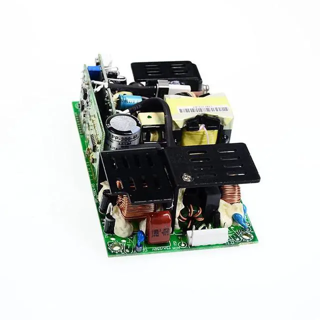 Model EPP-300-48 PCB type power supply, 6.25A 300W(20.5CFM), 4.17A 200.2W(Convection) 5x 3 compact size Full range 90~264VAC input with built-in PFC function Free air convection for 200W and 300W with 20.5CFM forced air Built-in remote sense function
