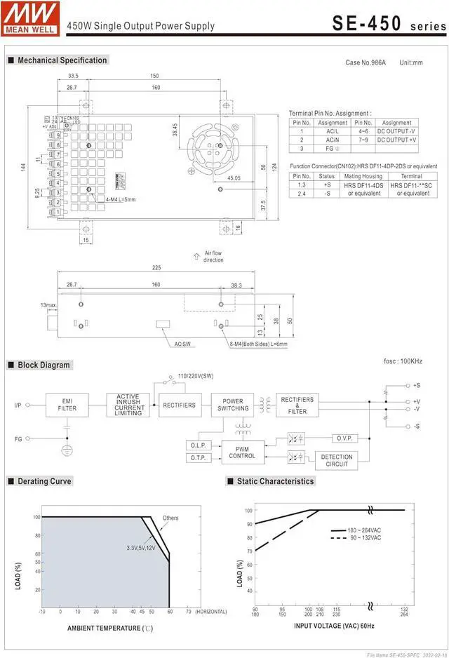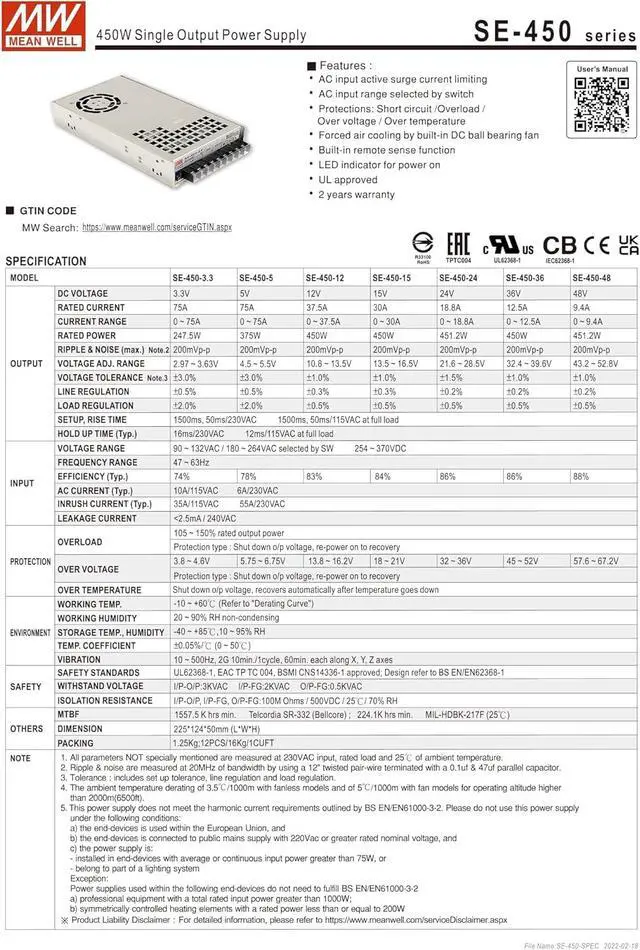 Mean Well SE-450-36 450W Single Output Power Supply SE-450 36V/12.5A