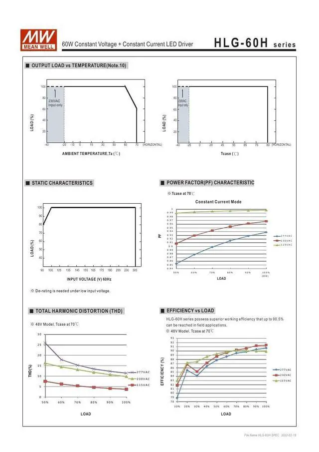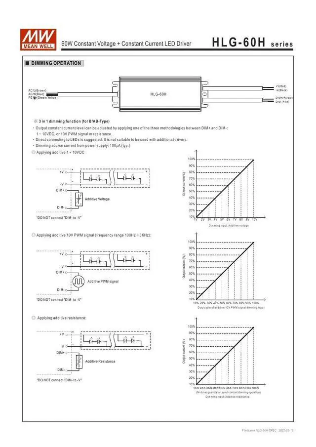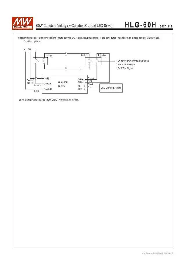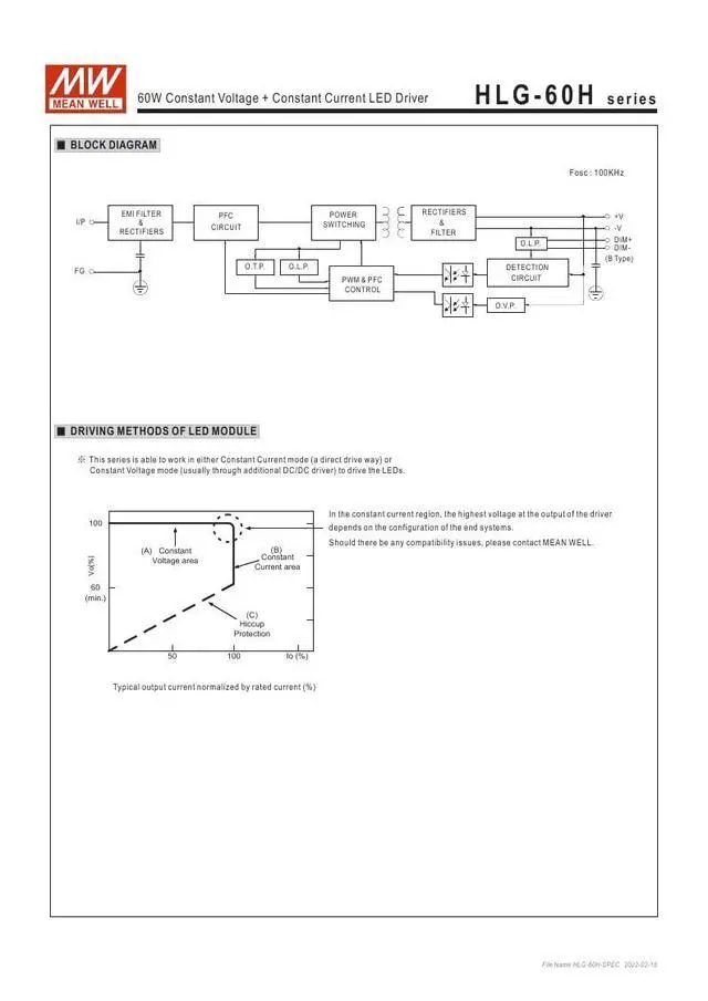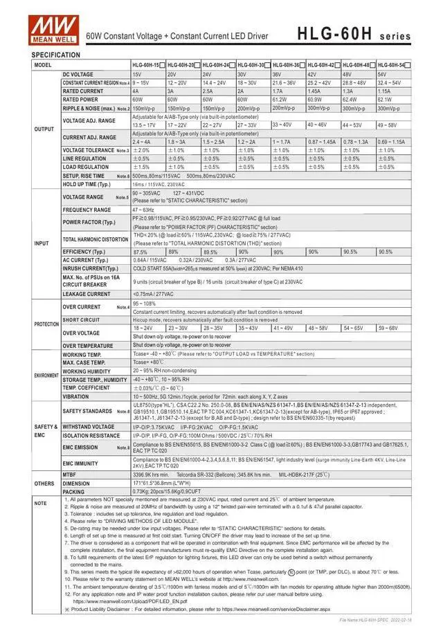 Mean Well HLG-60H-36A Constant Voltage + Constant Current LED Driver HLG-60H