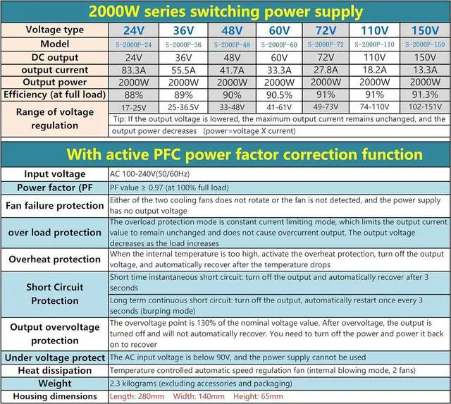 Switching Power Supply 2000w with PFC ,Constant voltage constant current.