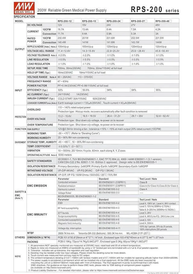 Medical safety approved (2 x MOPP) according to ANSI/AAMI ES60601-1 and lEC/BS EN/EN60601-1