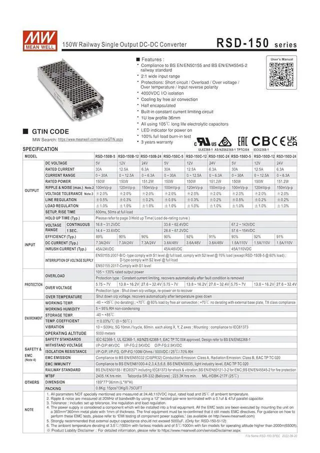 Protections: Short circuit / Overload / Over voltage /Over temperature / lnput reverse polarity