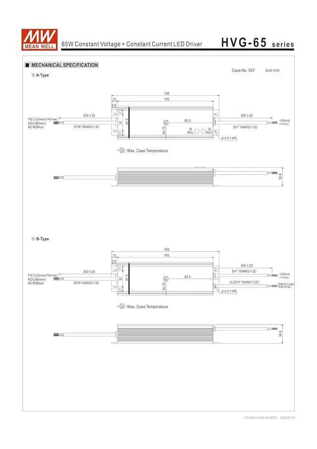 Constant Voltage + Constant Current mode output Metal housing with Class I design Built-in active PFC function IP65 protection Both indoor and outdoor use